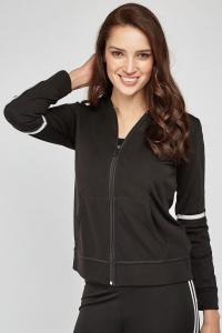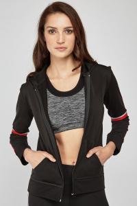 Striped Trim Zip Up Hoodie