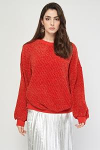 Metallic Thread Zipper Hem Jumper