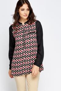 Mono Printed Button Up Blouse