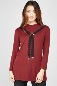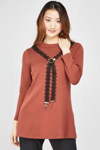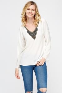 Embellished Neck Tunic Top