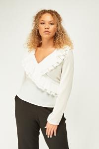 Sheer Wrap Pleated Ruffle Blouse