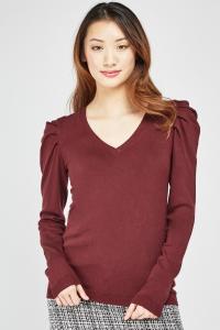 Ruched Shoulder V-Neck Knit Top