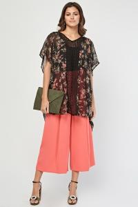 Crochet Trim Sheer Floral Kimono
