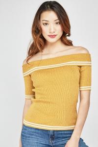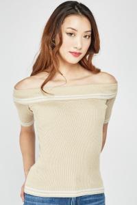 Metallic Insert Striped Off Shoulder Top