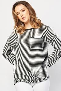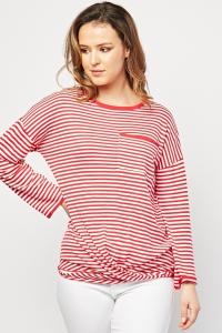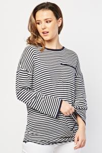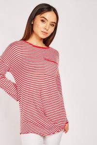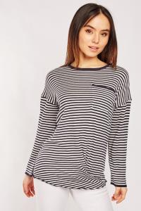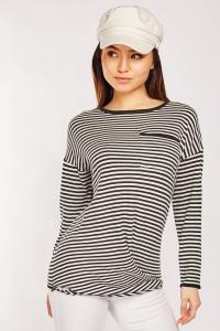 Casual Single Pocket Front Striped Top