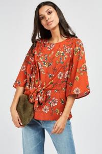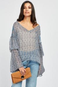 Tie Up Printed Chiffon Blouse
