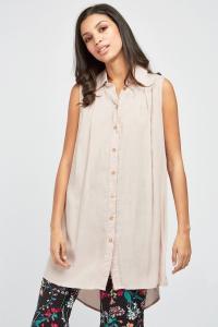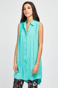 Sleeveless Sheer Long Line Shirt