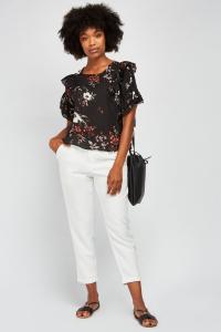 Pleated Front Ruffle Trim Blouse