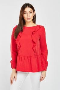 Ruffle Front Red Blouse