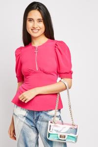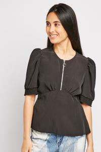 O-Ring Zipper Front Blouse
