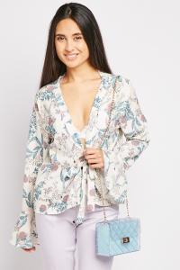 Open Tie Up Printed Blouse