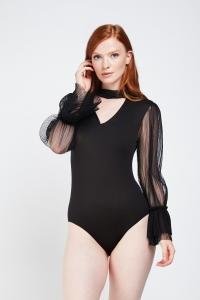 Mesh Sleeve Choker Neck Bodysuit