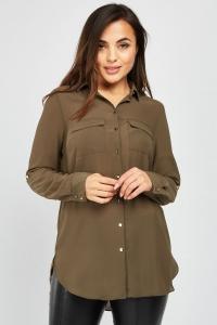 Twin Pocket Front Chiffon Blouse