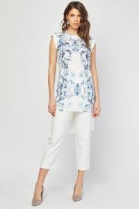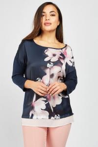 Effect 3D Flower Print Dip Hem Top
