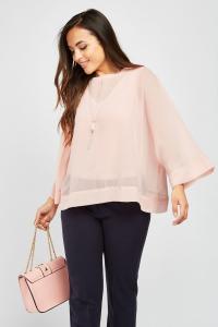 Sheer Batwing Sleeve Chiffon Blouse