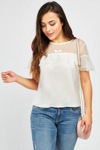 Ruffle Mesh Panel Blouse