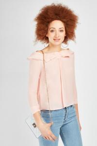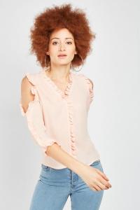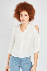 Ruffle Cold Shoulder Chiffon Blouse