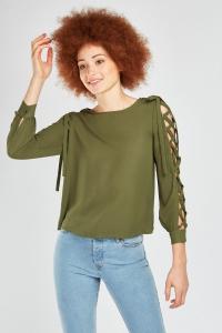 Lace Up Sleeve Blouse