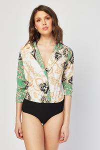 Scarf Print Sheer Bodysuit