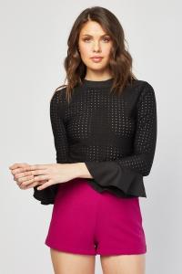 Perforated Flared Sleeve Blouse