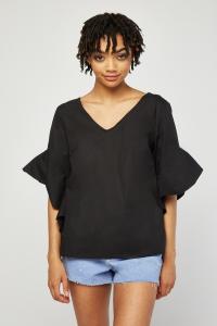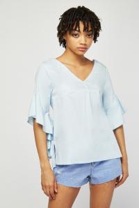 Asymmetric Ruffle Sleeve Blouse