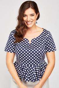 Polka Dot Print Peplum Top