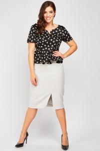Bird Print Peplum Top