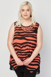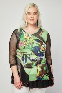 Graphic Printed Mesh Contrast Top