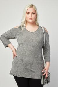 Cut Out Shoulder Grey Speckled Top