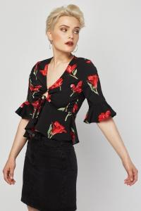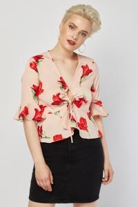 Twisted Front Floral Print Top