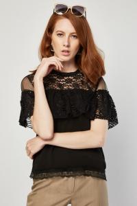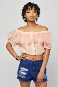Ruffle Mesh Lace Crop Top