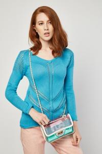 Perforated Long Sleeve Knit Top
