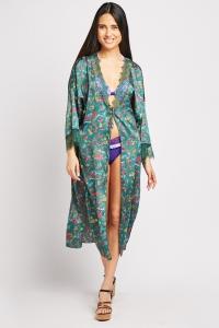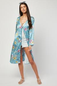 Open Front Floral Sateen Kimono