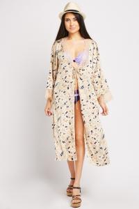 Lace Insert Floral Kimono