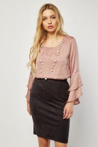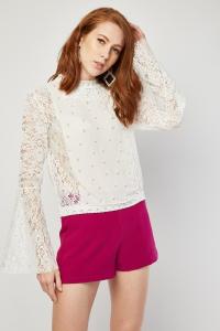 Faux Pearl Embellished Bell Sleeve Blouse