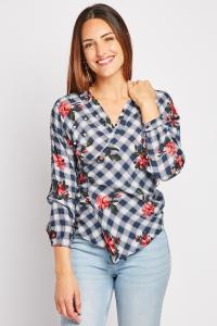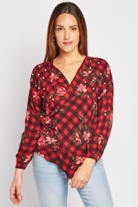 Checked Faux Pearl Trim Top