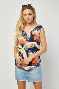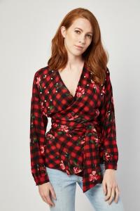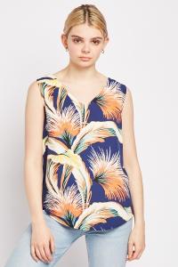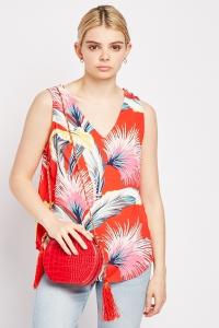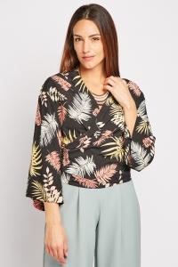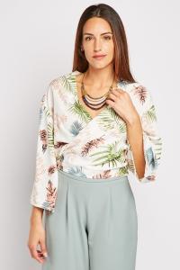 Tropical Print Wrap Blouse