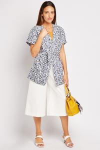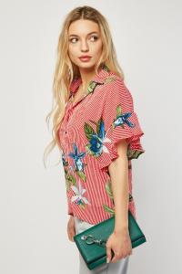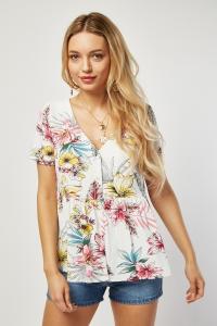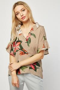 Hawaiian Printed Frilly Hem Blouse
