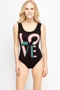 Logo Print Black Bodysuit