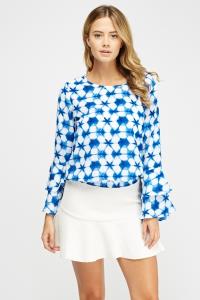 Flared Sleeve Kaleidoscope Print Top