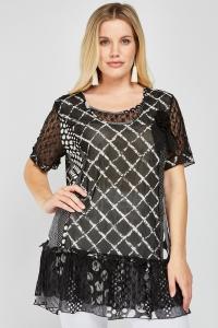 Diamond Pattern Ruffle Mesh Top