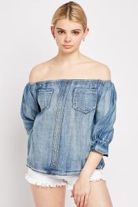 Off Shoulder Light Denim Top