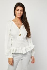 Ruffle Hem Fitted Blouse