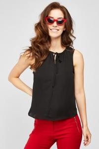 Sleeveless Ruffle Trim Blouse
