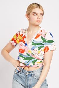 Printed Crochet Trim Wrap Top