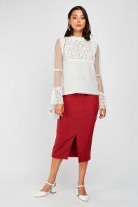 Faux Pearl Mesh Contrasted Blouse