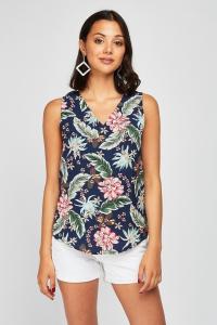 Printed Asymmetric Wrap Top