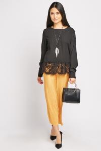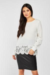 Lace Hem Long Sleeve Top