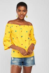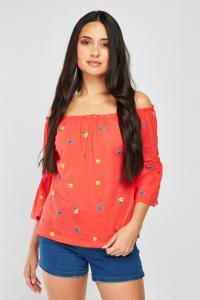 Embroidered Flower Bardot Top
