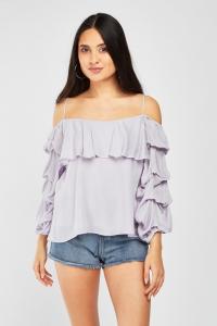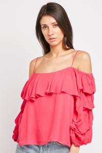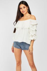Ruffle Tiered Cold Shoulder Top